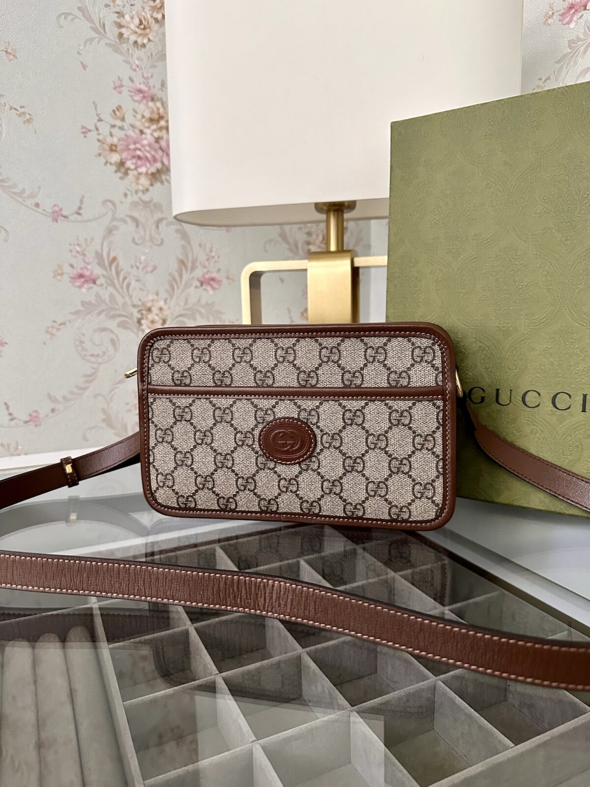 Be the first to review “Gucci Interlocking G Patch Camera Bag GG Coated Canvas Mini crossbody bag” Cancel reply